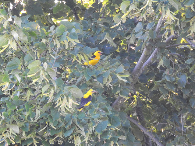 Das erkennt man an dem Gefieder - normalerweise "leuchten" Pirole gelb und schwarz. Nach der Brut sind die Farben "verwaschen". Wir haben einige Tiere beobachten können, bei denen wieder das leuchtende Gefieder zum Vorschein kam - die Mauser war beendet.